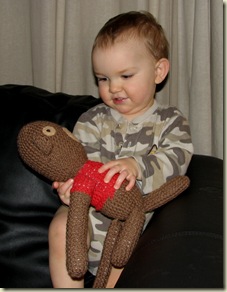 Then I came across Ana Paula Rimoli's Amigurumi World, and decided that the animals in it were cute enough to make counting stitches worth my while. I randomly picked the monkey, which turned out (I think) to be the biggest animal in the book – this guy is over 10 inches tall! I think I’ll stick with the smaller animals from here on out, but big was good in a way since I didn’t have any tiny details to worry about as I re-learned how to single crochet (for the umpteenth time). There are clear illustrations on how to make each stitch at the front of the book, and this guy required only basic stitches.